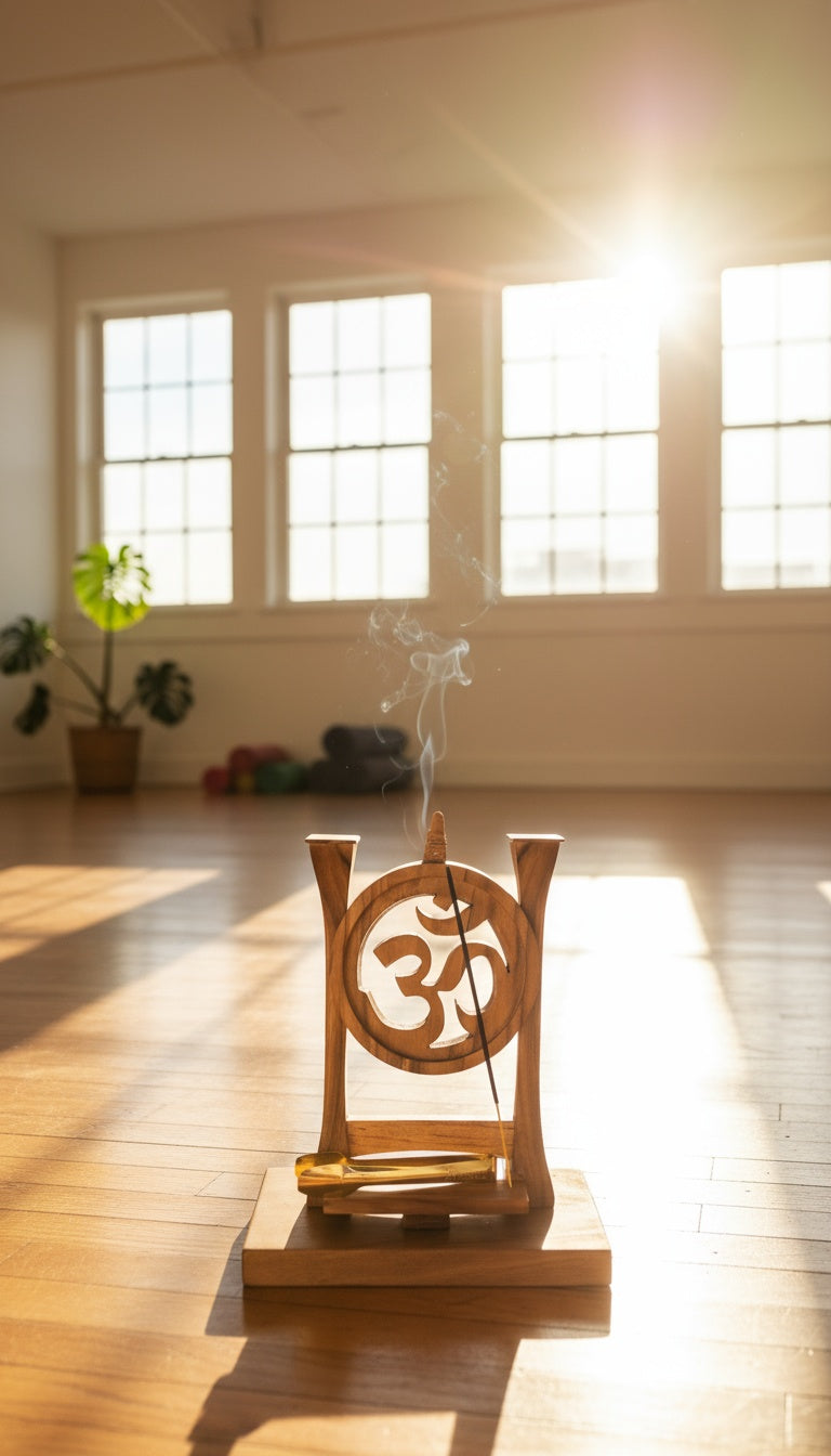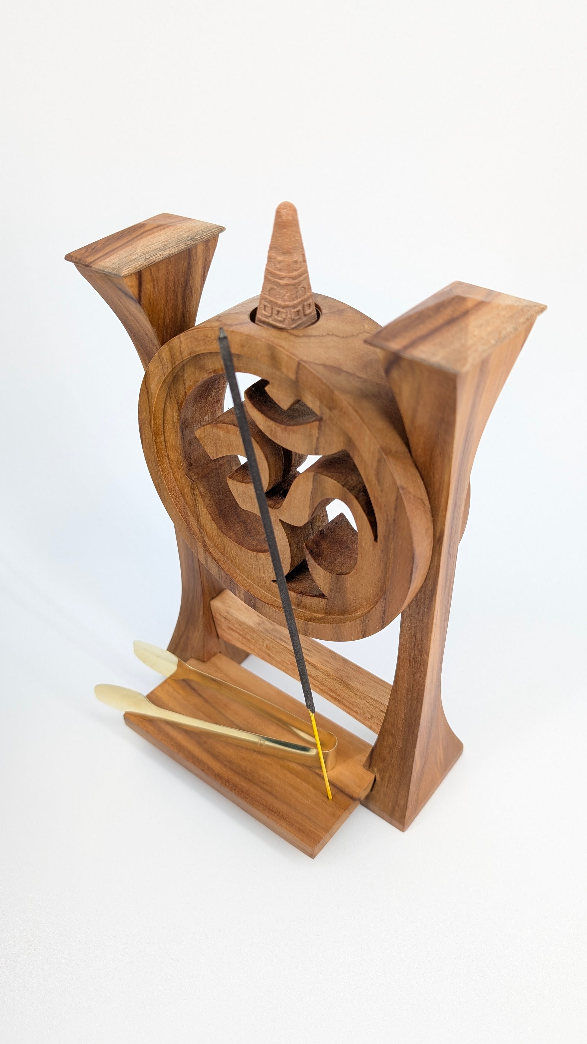Experience mindful living with the Ornaument Serenity Kit—an artisan-crafted, acacia wood incense set designed with sacred geometry, Angel Number 105 and the Aum/Om/ॐ symbol..