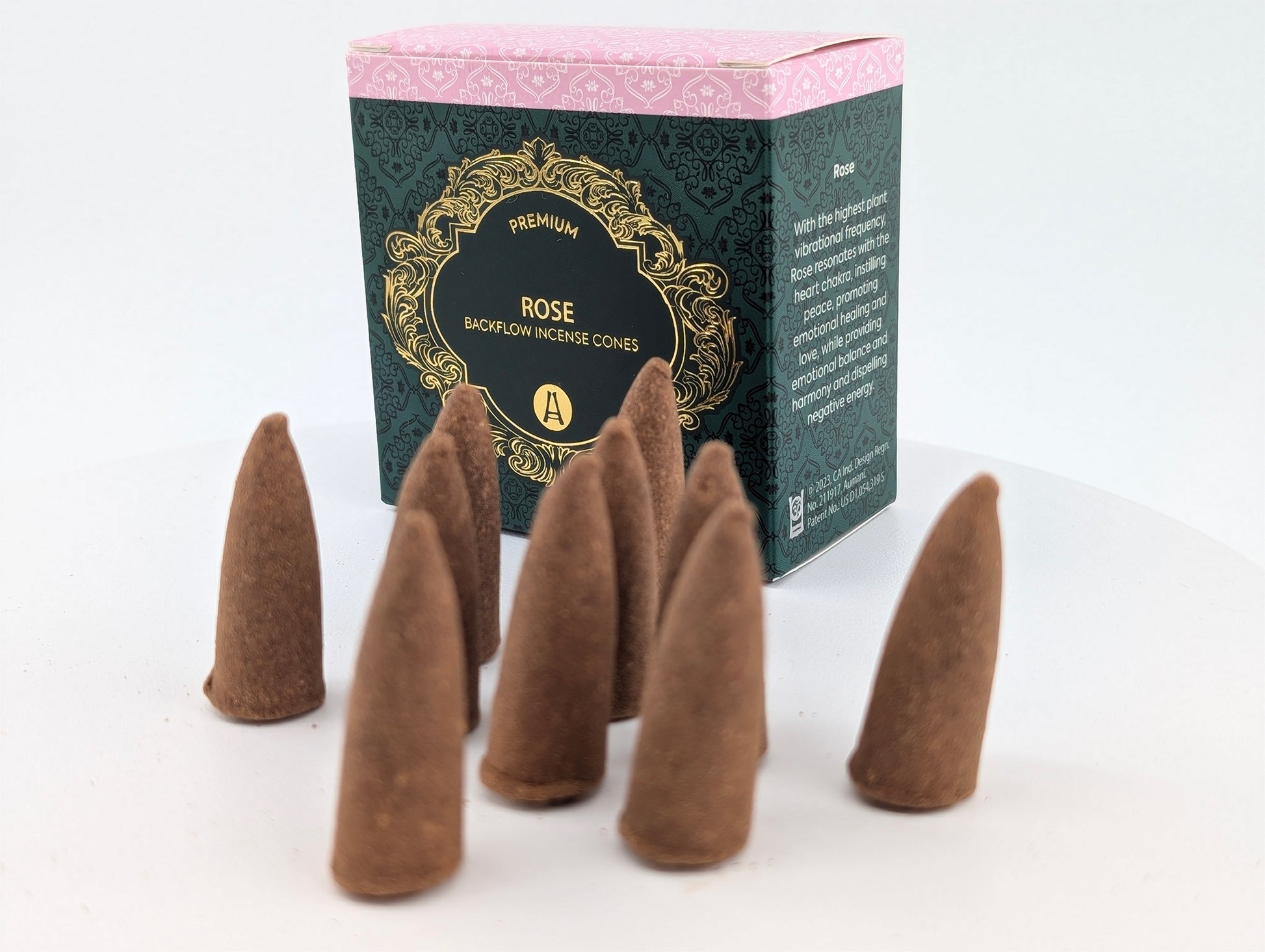 Transformative Aromatics: 20 rose backflow cones of premium incense.